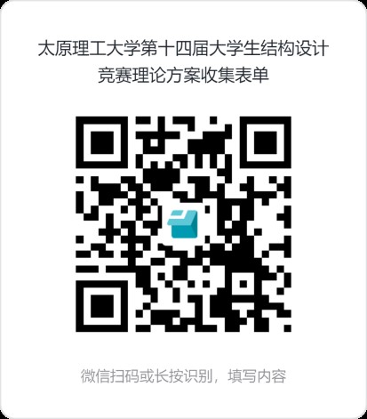 2、提交方式和时间:各参赛队将理论方案按A4格式排版,于2026年4月11日12:00前将理论方案点击下方链接或扫码(图3)上传至《太原理工大学第十四届大学生结构设计竞赛理论方案收集表单》,上传链接:https://f.kdocs.cn/g/IhdHFQD2/。逾期上传作自动放弃处理,理论方案为零分。